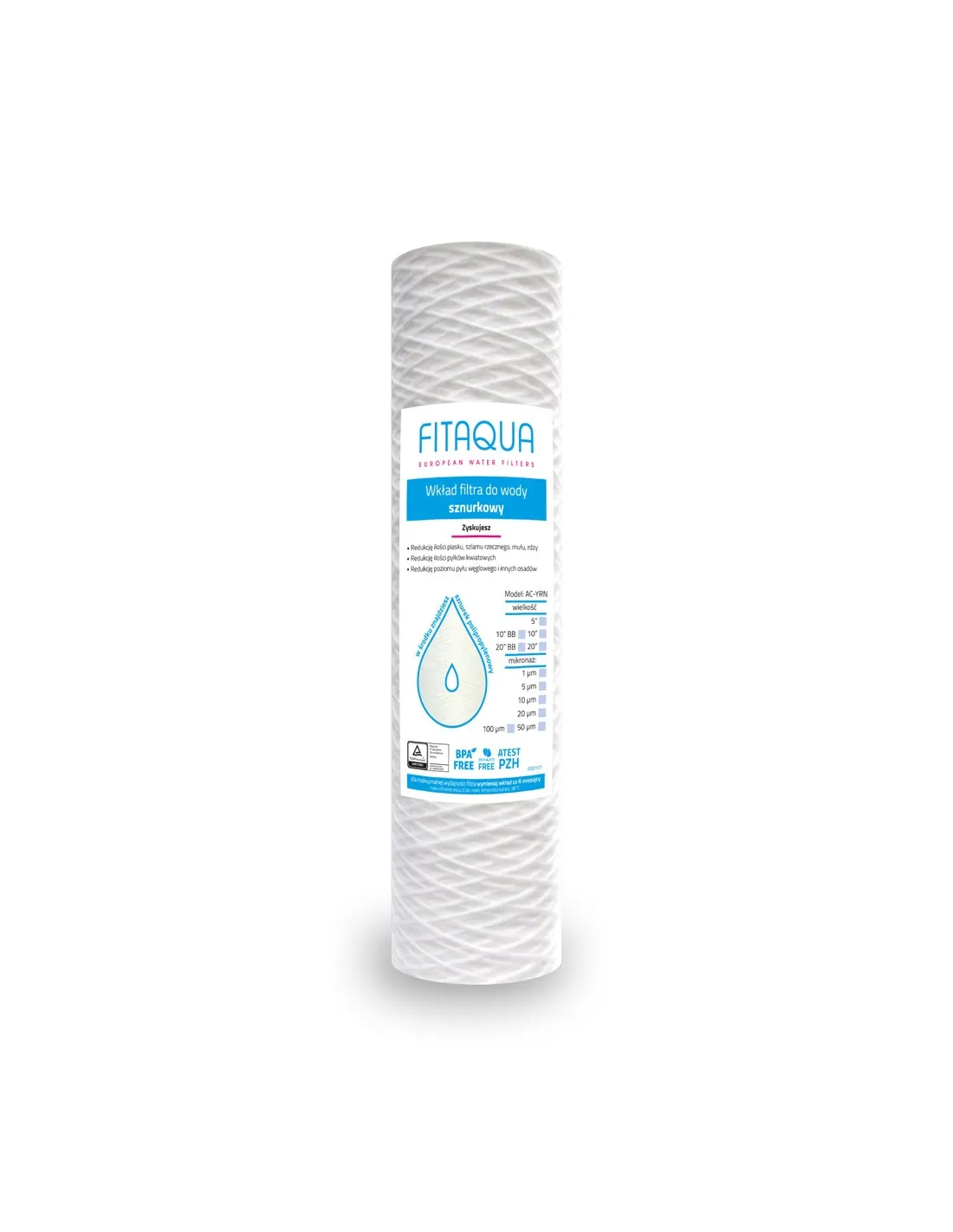 Usuwa zanieczyszczenia mechaniczne od 1 do 100 mikronów i pasuje do obudów filtrów domowych oraz systemów RO